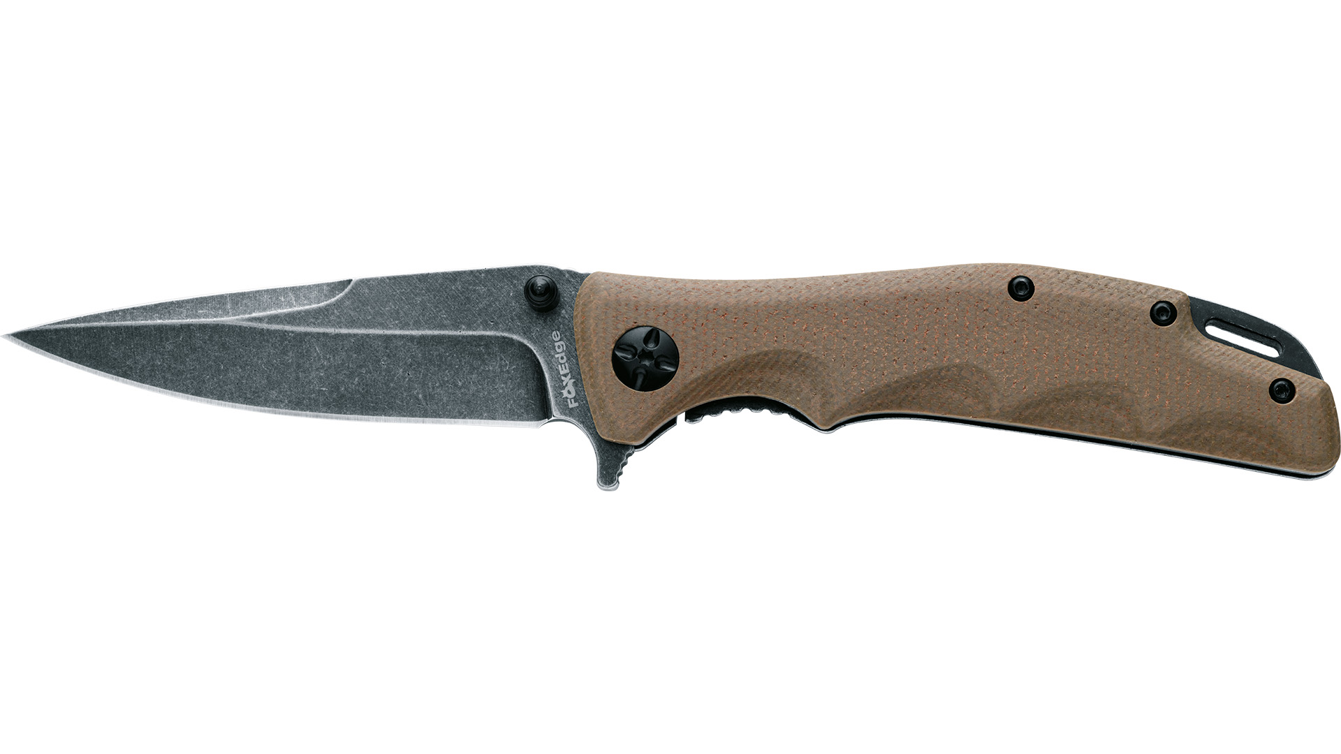 The Fox Edge Mandatory Fun Coyote is a slim, cool EDC pocket knife. You open it with the help of the thumb studs or the flipper.